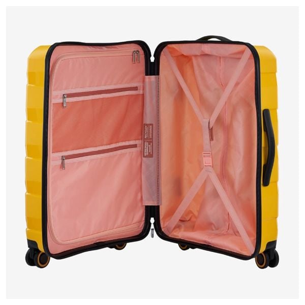 Air Move được thiết kế với ngăn chia đa ngăn, giúp bạn đóng gói linh hoạt và ngăn nắp. Lớp lót bên trong được xử lý bằng công nghệ kháng khuẩn Microban™, giúp tăng cường vệ sinh hàng ngày. Về mặt an toàn, khóa kéo chống trộm Duosaf™ kết hợp với khóa TSA 008, đảm bảo hành lý luôn được bảo vệ trong suốt chuyến đi. Khi sẵn sàng di chuyển, hệ thống bánh xe đôi xoay 360° với điểm nhấn màu sắc giúp vali lướt êm ái trên hầu hết mọi bề mặt.
